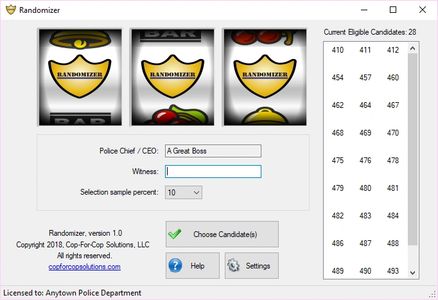 Order your copy of Randomizer today for only $199.99. Each order will arrive via the United States Postal Service with an installation package and the software will be pre-registered to your agency ready to go!